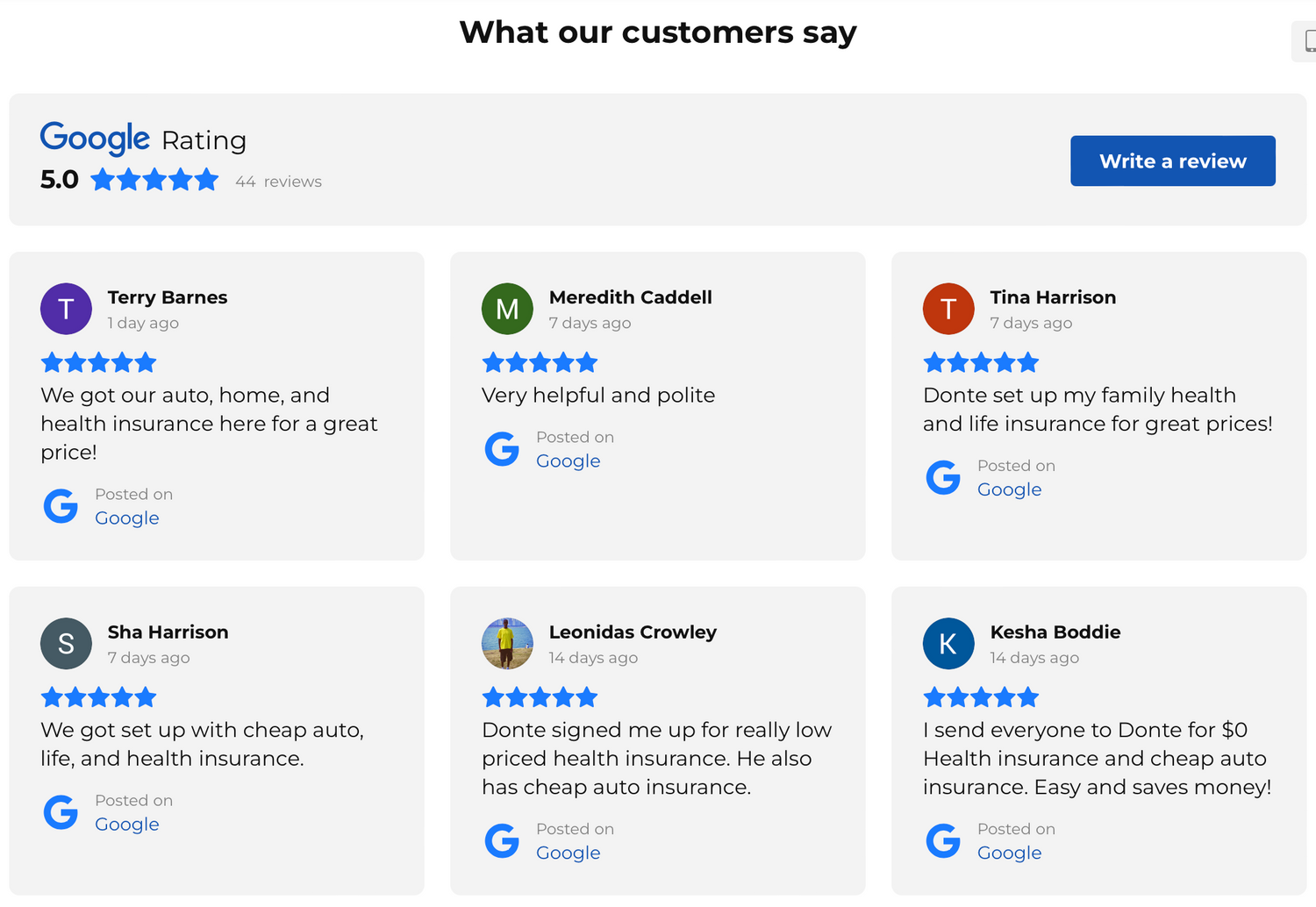 Our customers take pride in providing detailed explanations about their experience with D.Lane Agency.